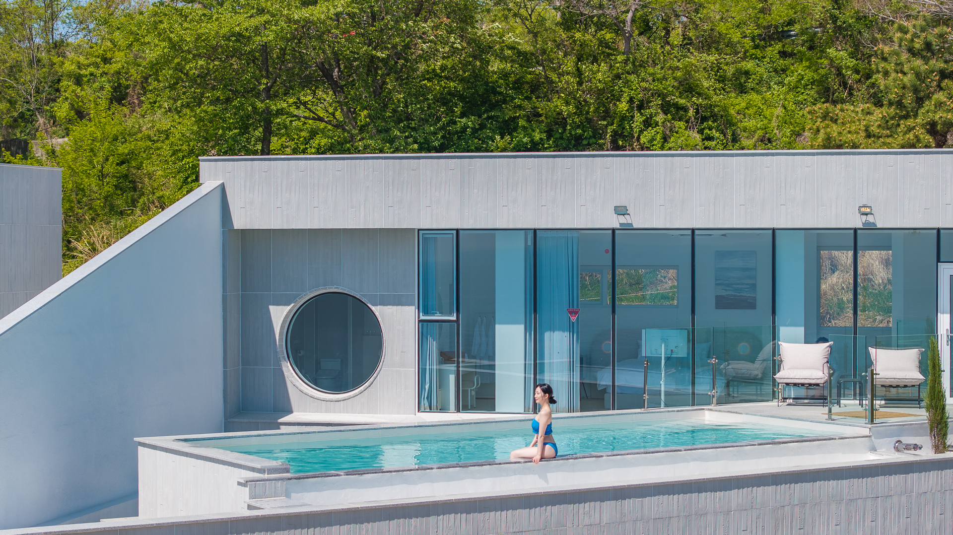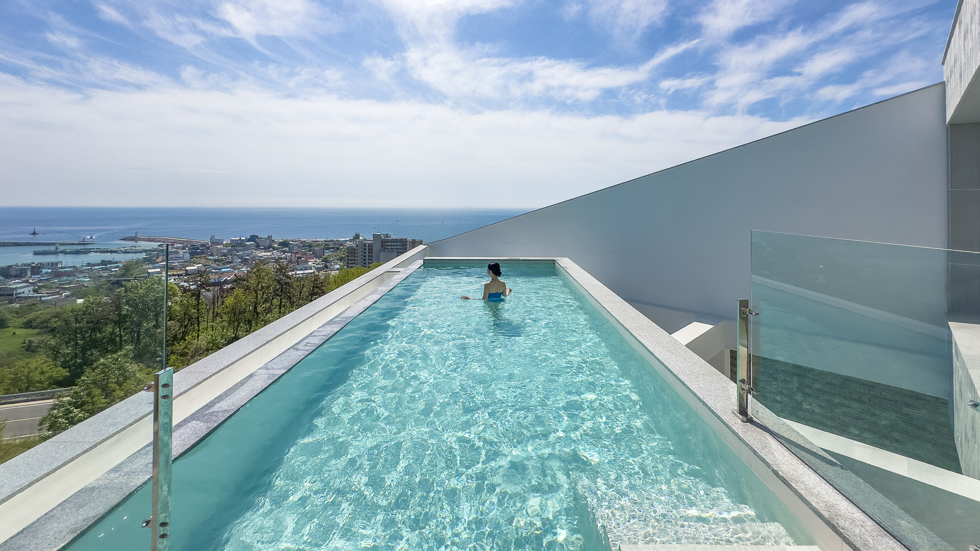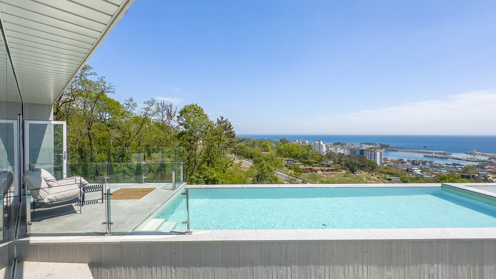 전 객실 파노라마 오션뷰를 즐기며 온수풀을 즐길 수 있습니다.